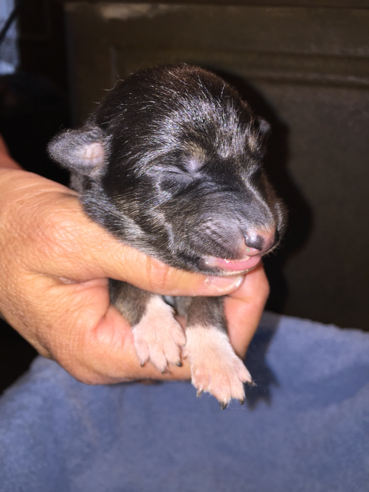 Rüde tricolor langhaar, grau EARL RESERVIERT