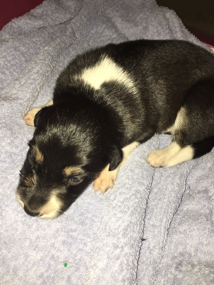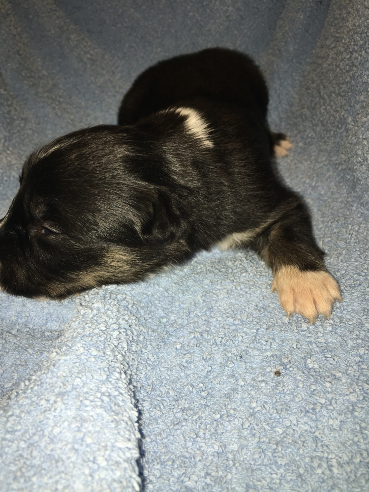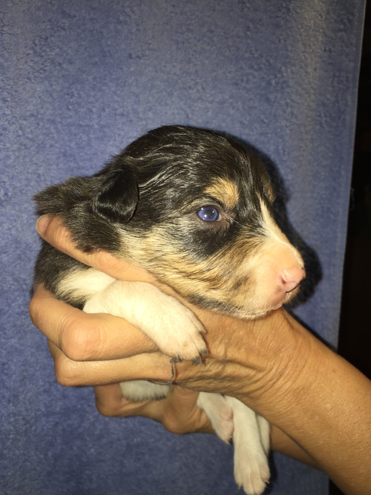 Hündin tricolor langhaar, blau ELISA RESERVIERT