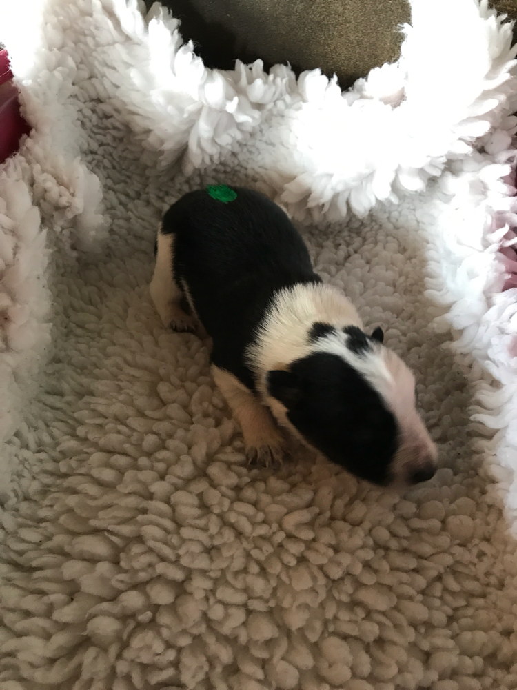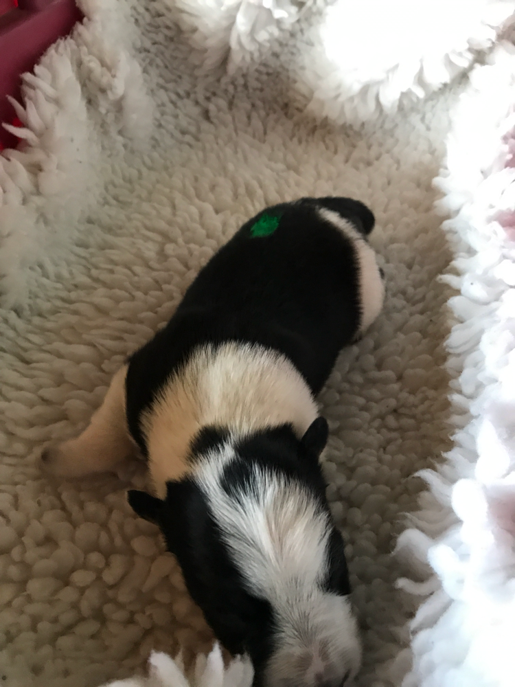 BRIANA Hündin tricolor (grün) vergeben