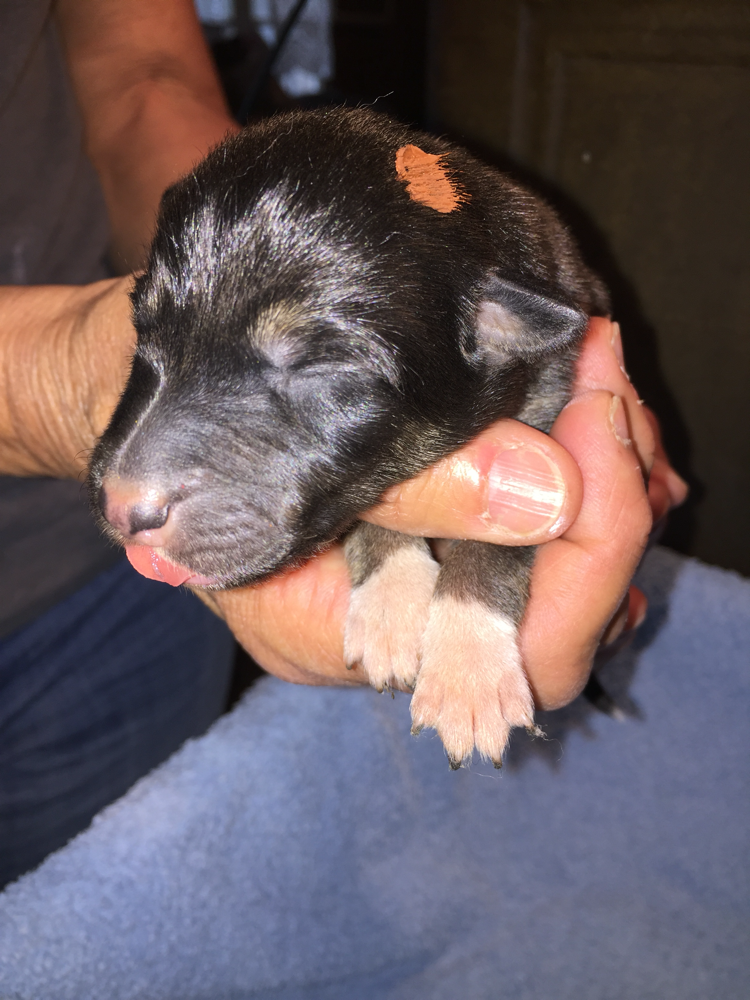 Hündin, black tan and white, DUCHESS vergeben